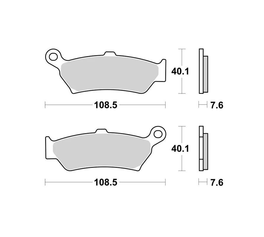 - Maße der beiden Beläge: 108.5 x 40.1 x 7.6