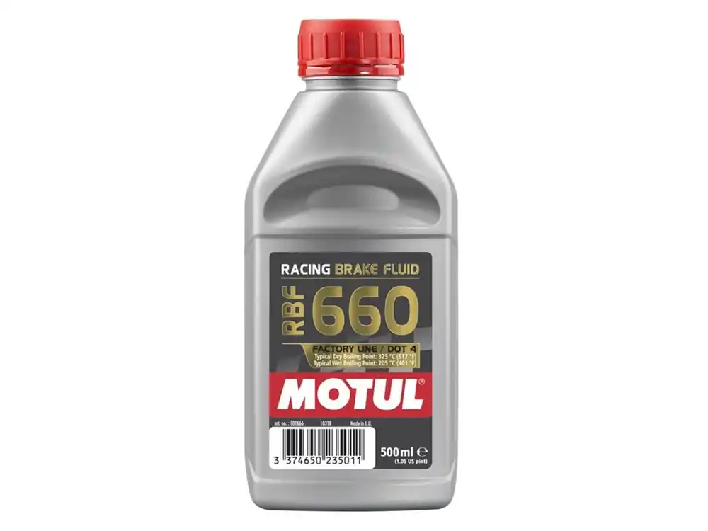 MOTUL RBF 660 ist eine vollsynthetische Bremsflüssigkeit auf Polyglykolbasisspeziell für den Rennsport entwickelt. Zudem ist die Bremsflüssigkeit geeignet für alle Bremssysteme (Stahl-, Keramikoder Carbon-Bremsscheiben), die derzeit im Rennsport vorkommen. Kannebenfalls in konventionellen Brems- und hydraulischen Kupplungssystemeneingesetzt werden.
