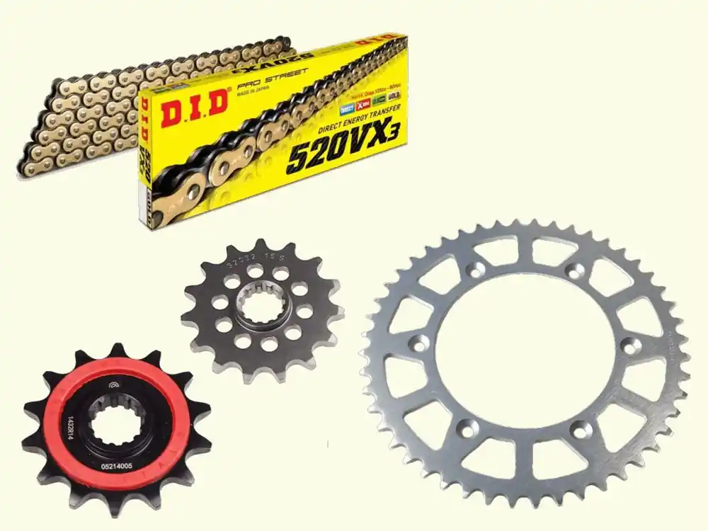 Die Kette ist eine extra verstärkte DID-Kette. DID ist Erstausrüster vieler marktführender Motorradmarken und Motorsportteams.