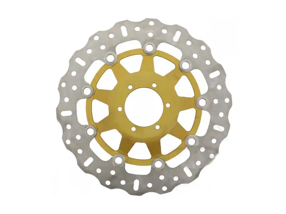 Lediglich in diesem Bereich kann sich leichter Flugrost bei längerer Standzeit bilden. Die Bremsscheiben sind im Vogelschwingendesign gebohrt, um mit so wenig Bohrungen wie möglich bei gleichzeitig optimierter Reinigung der Bremsscheibe von Regenwasser und Bremsstaub auszukommen. Je weniger Bohrungen angebracht sind, desto besser ist das Nassbremsverhalten und desto geringer ist der Verschleiß. Die schwimmenden Bremsscheiben sind mit dem einzigartigen und patentierten SD-System von EBC ausgestattet, dessen Vierkantnieten in den Aussparungen der Bremsscheibe unter der beim Bremsen entstehenden Hitze ein uneingeschränktes Ausdehnen des Außen- und Innenrings ermöglichen, ohne die Nietverbindung zu beeinträchtigen