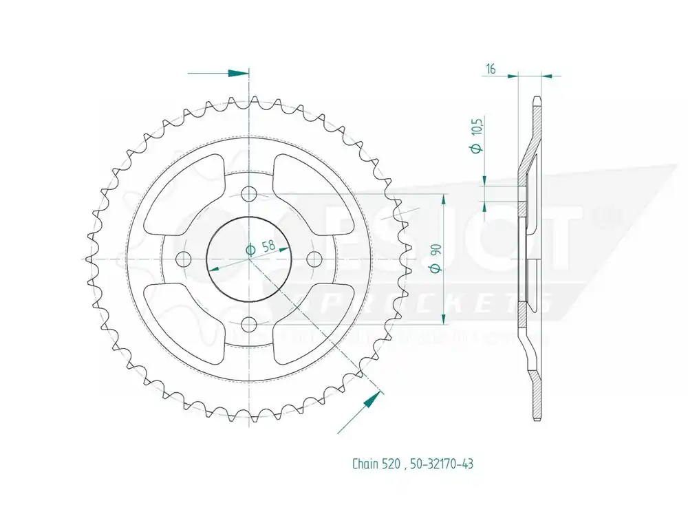 Echt Kettenrad Stahl 43 Zähne passend für Mash 250 Black Seven Cafe Racer Dirt Track Two Fifty
