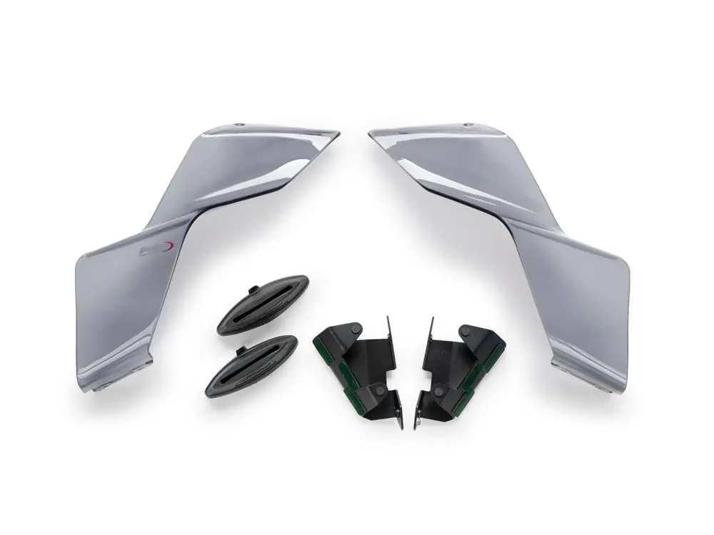 In Bezug auf die Aerodynamik gibt es viele Verbesserungen, was dieses neue Teil Ihrem Fahrzeug bringen wird. Besonders hervorzuheben ist: Abtriebseffekt bei starkem Bremsen, Anti-Shimmie-Effekt bei hohen Geschwindigkeiten, Reduzierung der seitlichen Bewegungen und Anti-Wheelie-Effekt, Verhinderung des Abhebens des Rades und größere Stabilität bei Richtungswechseln.