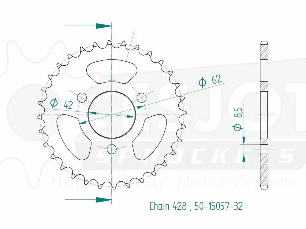 Jetzt Bestellen Kettenrad Stahl 32 Zähne (428) passend für Dinli Helix / T-Rex 50 100