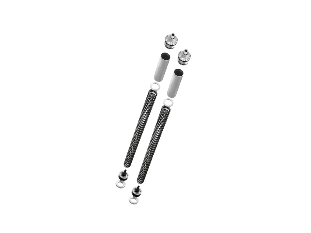 Das YSS Gabel Upgradekit sorgt für spürbar mehr Kontrolle und Stabilität auf der Straße. Mit diesem Upgrade verbesserst du das Ansprechverhalten deiner Motorradgabel und erhöhst die Fahrsicherheit – perfekt für Fahrer, die Wert auf präzises Handling legen.Das Kit enthält eine straffere Gabelfeder sowie einen einstellbaren Gabelrohrdeckel, mit dem sich die Federvorspannung von außen bequem und präzise justieren lässt. So kannst du den Druck und die Vorspannung der Feder individuell an dein Fahrverhalten und die Straßenbedingungen anpassen.
