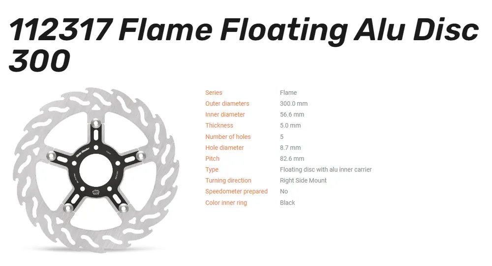 Moto-Master Bremsscheibe Flame Floating Alu-Disc vorn rechts passend für Harley Davidson – 112317