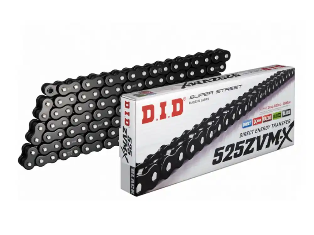 Markenware Kette DID Motorrad: DID525ZVM-X schwarz (BK&BK) 102 Glieder offen mit Holhnietschloss