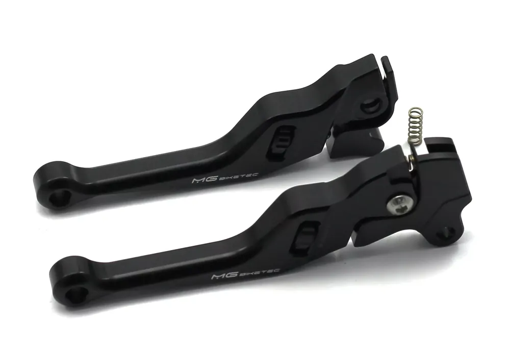 Das MG Biketec Brems- & Kupplungshebel Set kurz mit ABE wurde speziell für anspruchsvolle Fahrer entwickelt, die höchsten Wert auf Präzision, Ergonomie und Design legen. Die kurzen Hebel im sportlichen Design bieten ein exzellentes Griffgefühl und ermöglichen dank der 2-Finger-Funktion eine optimale Dosierbarkeit der Brems- und Kupplungskräfte. Die in 25 mm Verstellbereich über 20 Positionen einstellbare Griffweite erlaubt es Ihnen, den Hebel perfekt auf Ihre Handgröße und Ihren Fahrstil abzustimmen.