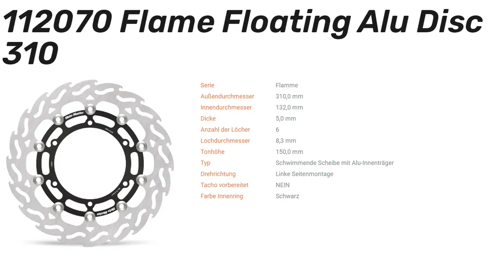 – Moto-Master Bremsscheiben sind für jeden Einsatzzweck, sei es Offroad, Supermoto und Strasse geeignet