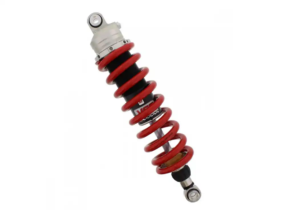 Öldruckdämpfer mit Stahlgehäuse, Federvorspannungist stufenlos einstellbar.