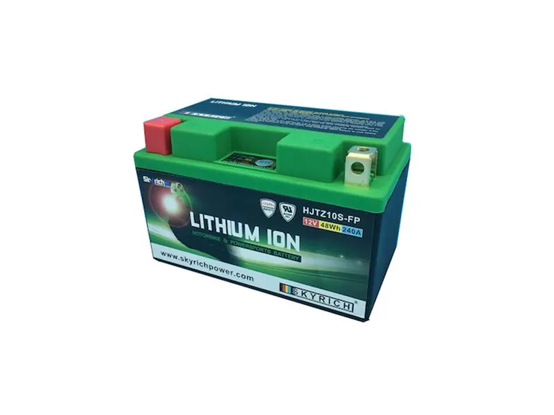 Lithium-Ionen Batterie mit Überspannungsschutz von Skyrich – Skyrich ist ein Premiumhersteller und Serien-Lieferant für namenhafte Hersteller wie z. B. KTM und Ducati. Die Power Sports Lithium-Ionen Batterien der LTM-Line zeichnen sich durch ein hitzebeständiges, wasserdichtes Nylongehäuse und verbesserte Polanschlüsse aus. Mit dem Ersatz einer Standard Blei-Säure-Batterie durch eine Skyrich Lithium-Ionen-Batterie können bis zu 5 kg Gewicht gespart werden, ohne nennenswerten Aufwand.
