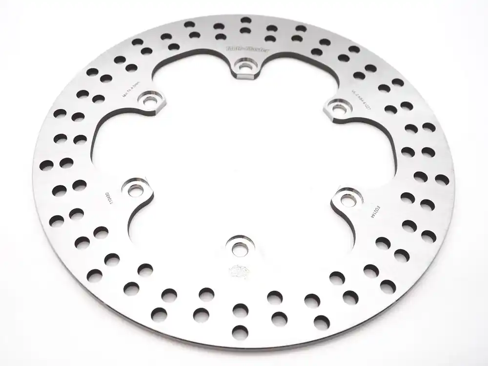 Moto Master Bremsscheiben mit perforierter Bremsfläche für ein perfektes Bremsen sindaus Erkenntnissen des Rennsports entwickelt. Moto.Master stehtfür eine perfekte Passform und eine außergewöhnlich sportliche Optik.Alle Bremsscheiben sind aus gehärtetem und veredeltem Chromolybdän-Stahlgefertigt undpräzisions-lasergeschnitten, CNC-gefräst und oberflächenbehandelt. Auch bei hoherHitzeentwicklung sind Formstabilität, Schwingungsarmut und gleichbleibende Bremsleistung garantiert. Das Designsorgt für eine Selbstreinigung der Bremsscheibe und eine optimale Temperaturverteilung und Hitzeableitung.