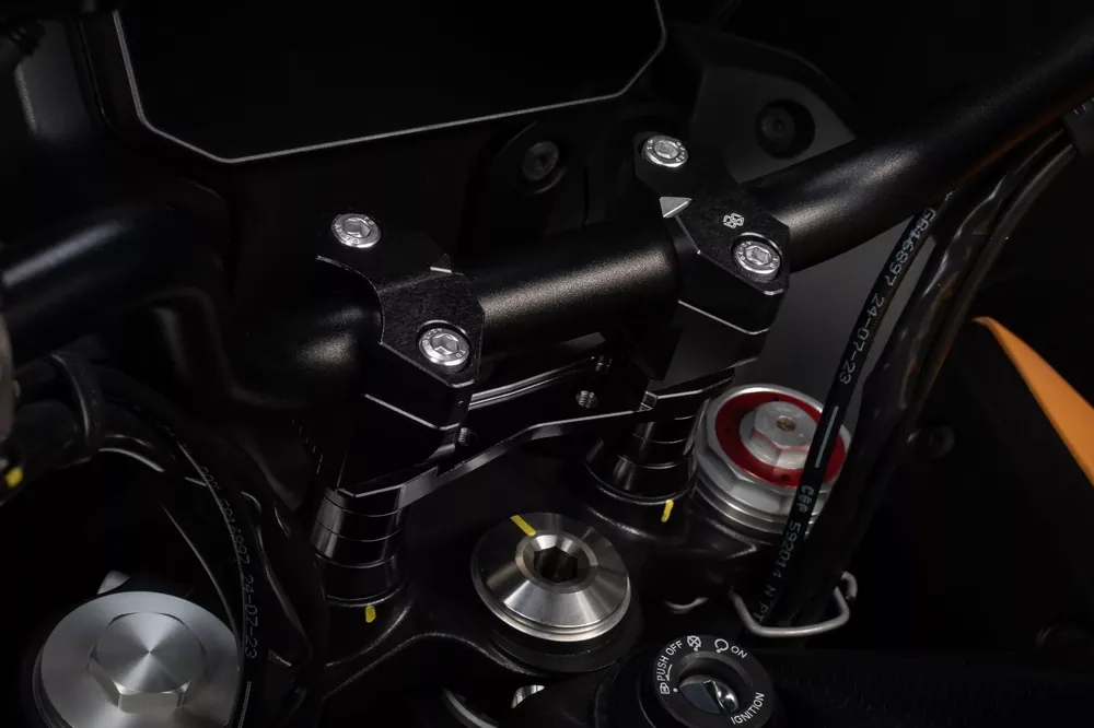 Die GILLES 2DGT verstellbaren Lenkerböcke in elegantem Schwarz bieten Ihnen präzise Einstellmöglichkeiten für eine perfekt angepasste Ergonomie auf Ihrem Motorrad. Entwickelt für anspruchsvolle Fahrer, ermöglichen sie eine individuelle Anpassung der Lenkerposition sowohl in der Höhe als auch in der Neigung. Die hochwertige Verarbeitung aus CNC-gefrästem Aluminium sorgt für maximale Stabilität und Langlebigkeit. Eine integrierte Markierung erleichtert die präzise Positionierung und Wiederholgenauigkeit. Mit ihrer sportlichen Optik fügen sich die 2DGT Lenkerböcke harmonisch in das Gesamtdesign Ihres Motorrads ein. ABE ist derzeit in Vorbereitung.