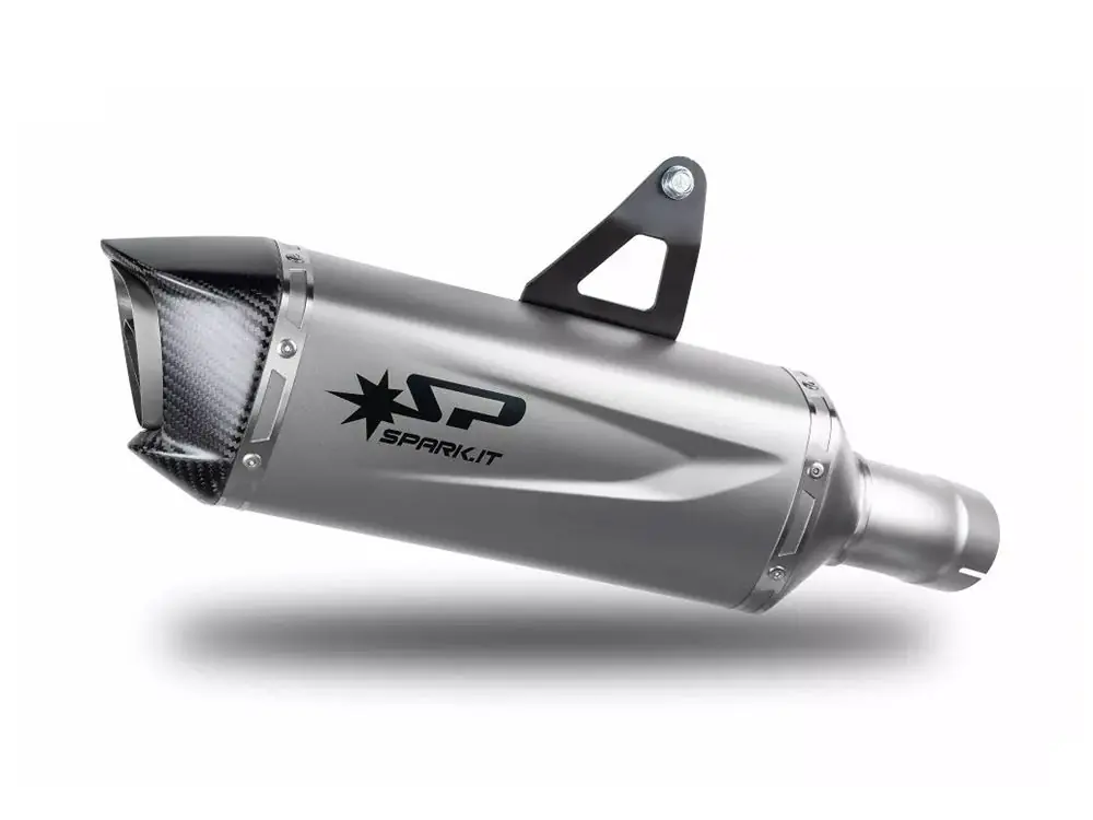 Spark R&D hat auch das Ziel erreicht, die Leistung zu steigern und einen dunklen und aggressiven Sound zu erzeugen, während die Vorschriften durch spezielle Details wie die Carbon-Endkappe eingehalten werden.