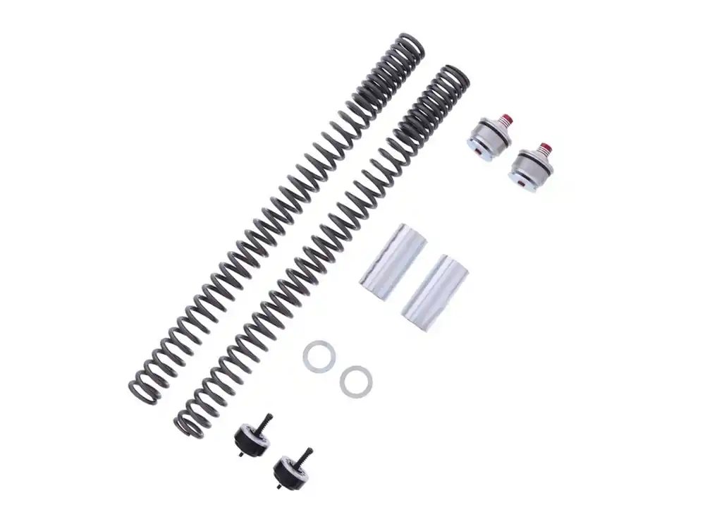 Das YSS Gabel Upgradekit sorgt für spürbar mehr Kontrolle und Stabilität auf der Straße. Mit diesem Upgrade verbesserst du das Ansprechverhalten deiner Motorradgabel und erhöhst die Fahrsicherheit – perfekt für Fahrer, die Wert auf präzises Handling legen.Das Kit enthält eine straffere Gabelfeder sowie einen einstellbaren Gabelrohrdeckel, mit dem sich die Federvorspannung von außen bequem und präzise justieren lässt. So kannst du den Druck und die Vorspannung der Feder individuell an dein Fahrverhalten und die Straßenbedingungen anpassen.